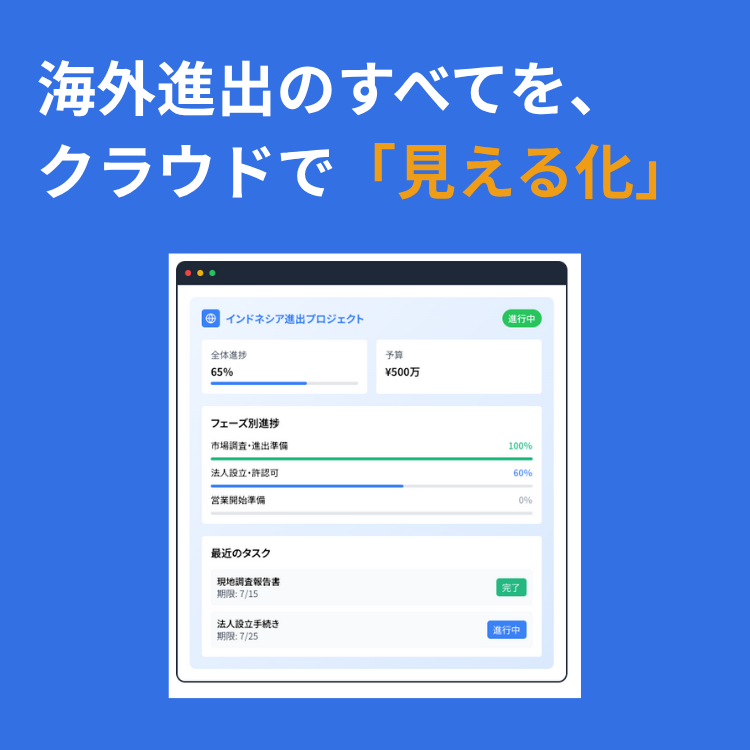 「Step Global」は、中小企業の海外進出プロジェクトを統合的に管理するクラウド型経営支援サービス。