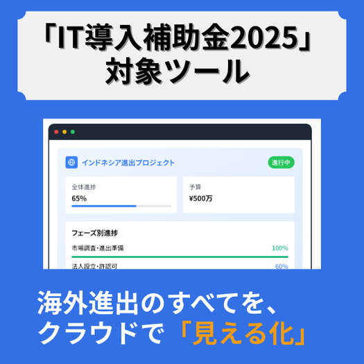 「Step Global」は、中小企業の海外進出プロジェクトを統合的に管理するクラウド型経営支援サービス。IT導入補助金2025の対象ツールです。